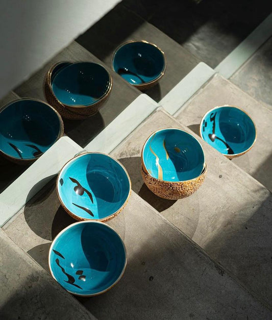 Ceramic Bowl Handcrafted in 11Kt Gold Outside